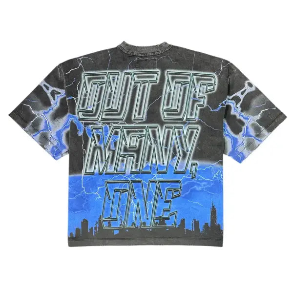 This T-Shirt is crafted from 10oz mid-weight washed fabric and features a striking art piece topped off with stones around the crown.